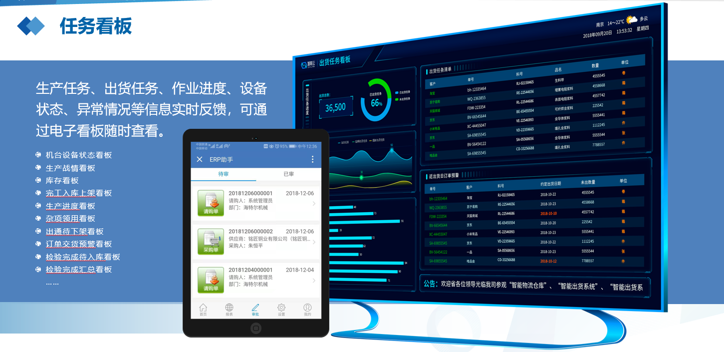 通过车间大屏获悉车间动态,了解设备运行状况, 适时掌握车间工作绩效,掌控生产