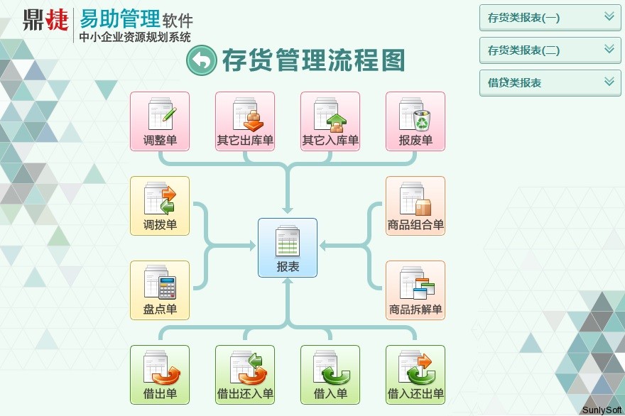 ► 提供仓库明细帐、汇总帐、进销存等丰富的报表,让仓管脱离手工帐,不再为帐务处理烦恼。