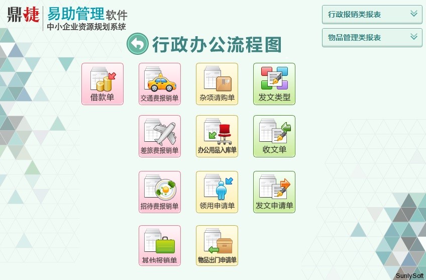 ► 借款及报销管理:日常的借款单、交通费报销、招待费报销等。