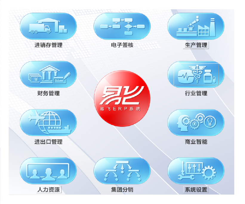 鼎新易飞ERP系统 涵盖进销存管理、生产管理、财务管理、人力资源管理、进出口管理、以及商业智能决策系统等管理范畴,共有四十五个模块,不仅功能完整,而且高度集成,将企业内